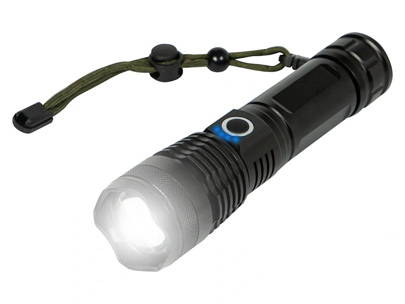 Na baterke sú diódy, ktoré ukazujú úroveň nabitia batérie (nie sú súčasťou balenia). Vďaka vodeodolnosti IP44 sa nemusíte báť, že by baterka ošpliechala alebo fungovala ani pri silných dažďoch. Ľahká a odolná konštrukcia z hliníkovej zliatiny znamená, že baterku možno použiť v extrémnych situáciách bez obáv z poškodenia. Svietidlo je napájané nabíjateľnou batériou alebo batériami (nie sú súčasťou balenia). Pri napájaní z batérií je možné ju nabíjať bez potreby vyberania batérie z baterky, cez USB C port a priložený USB kábel.